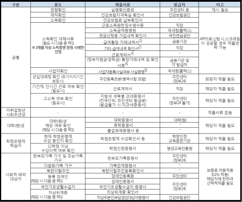 * 서류제출 해당 여부는 서금원 앱(App)을 통한 신청 시 확인 가능