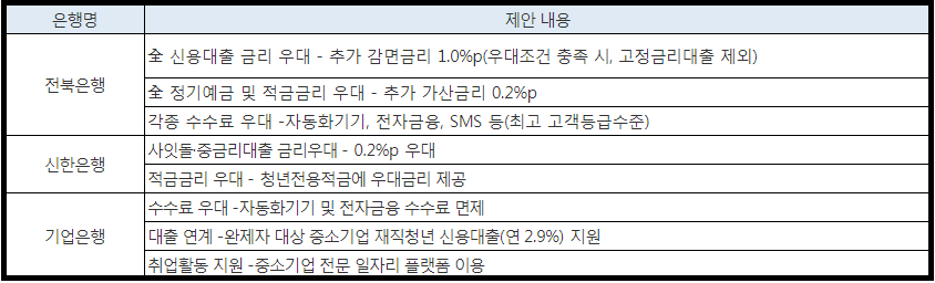 2) 취급은행 및 우대사항