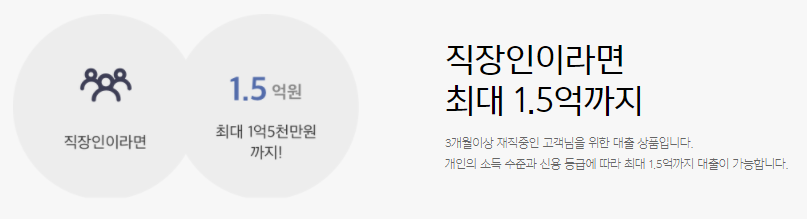 대출한도는 최대 1억 5천만 원까지 가능하며 개인의 신용 및 부채상태에 따라 차등 적용 됩니다.