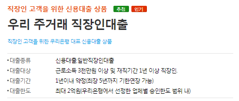 우리은행 직장인 대출의 자격은 일반기업, 지정 우량기업 재직자를 위한 우리은행 대표 직장인 대출 상품으로, 우리은행 인터넷 뱅킹에 가입한 내국인으로 국민연금 직장가입자로 12개월 이상 납부이력이 있고, 홈택스 소득금액이 확인이 되는 연소득 3000만원 이상인 고객 또는 연소득 2천만원 이상이며, 주거래 요건이 충족된다면 신청이 가능합니다.