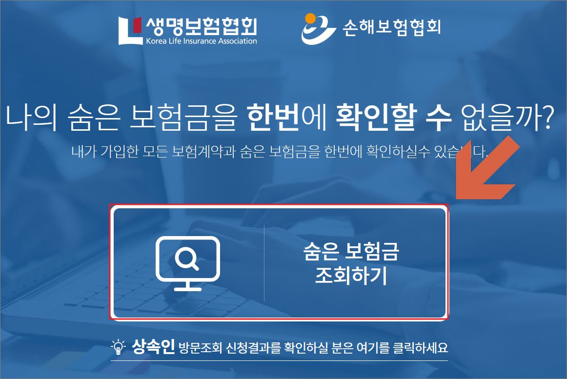 숨은 보험금 찾기 방법은 우선 내 보험금 조회를 위해 [내보험 찾아줌 홈페이지]에 접속 해야합니다. 사이트를 접속하시면 '숨은 보험금 조회하기'를 클릭하실수 있습니다.