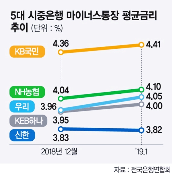 마이너스통장 금리는 대략적으로 위 자료와 같습니다.