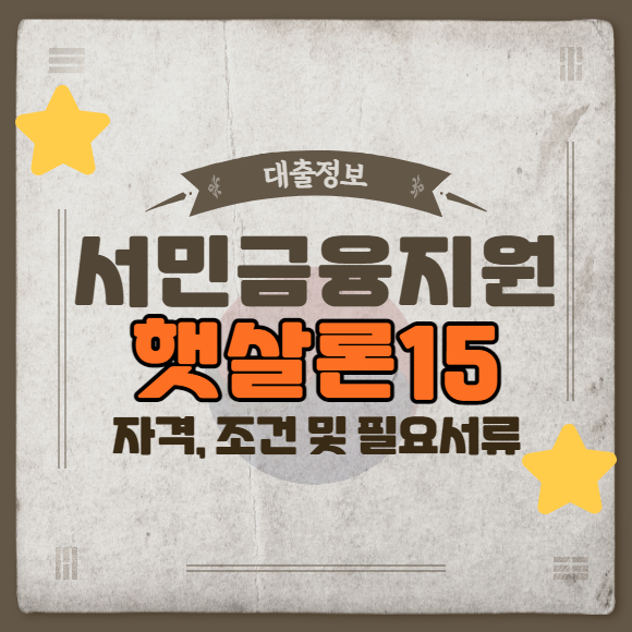 법정 최고 금리가 20%로 인하 결정되었습니다. 정부에서는 금리 인하에 따라 연 금리 15% 대인 "햇살론 15" 정부 지원 대출을 출시하였으며, "햇살론 15" 대출의 신청 대상, 금리, 대출 한도, 신청 방법 및 준비 서류와 그 밖에 대출시 궁금한 점들을 정리하였으니 참고하시면 햇살론15를 신청하시는데 도움이 되실겁니다. 저신용자, 서민 등 대출이 필요한 분들과 기존 "햇살론 17" 대출자 등 정보가 필요한 분들은 꼭 한번 챙겨보시기 바랍니다.
