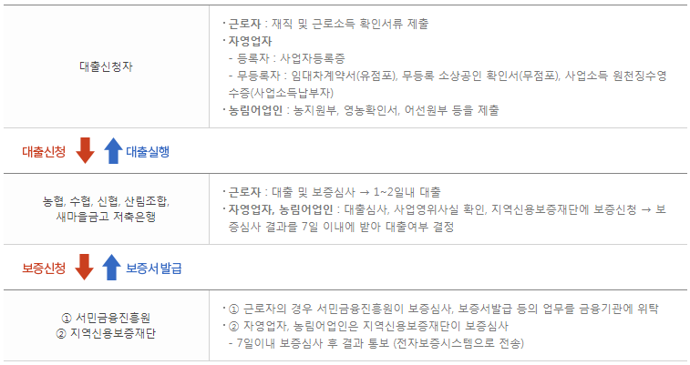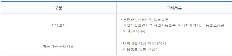 - 등록 자영업자는 사업자 등록증을 무등록자영업자는 임대차계약서, 무등록 소상공인확인서, 사업소득 원천징수 영수증 등이 필요