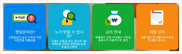 *햇살론 재출자격 보증대출 대상에 해당하더라도 최종적인 대출여부는 각 서민금융회사의 여신심사 결과에 따라 결정되며, 신용관리정보 보유자 및 연체중인 경우는 대출이 제한이 됨