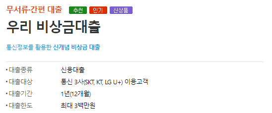 우리은행에서도 무직자 비상금 대출 상품이 있어서 빠르게 이용할 수 있습니다.