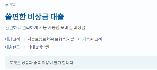 농협은행에서 판매하는 비상금 대출과 성격이 거의 유사한 상품으로 같은 상품이 은행만 다르다고 생각될 정도로 유사한 점이 많은 상품입니다.