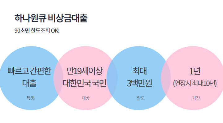 하나 원큐 비상금 대출 상품은 하나은행에서 판매하는 무직자 비상금 대출 상품입니다.